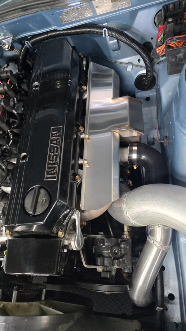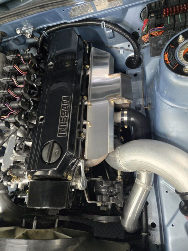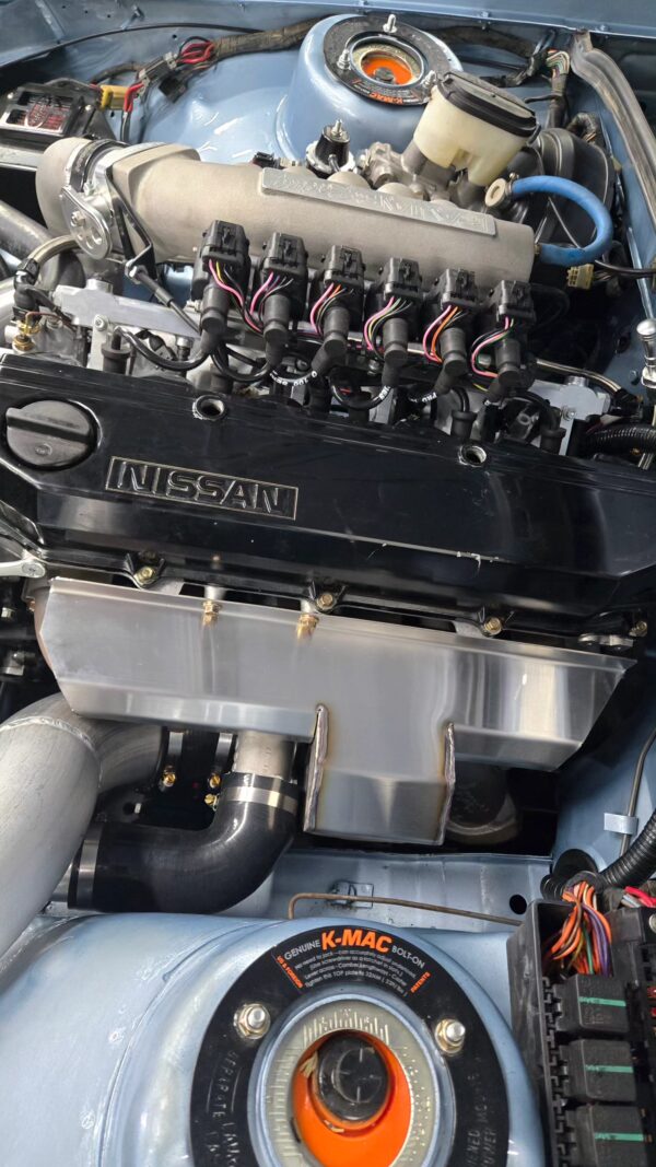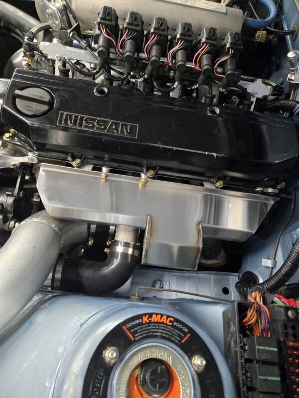 The Rajab Racing Developments VL Turbo exhaust manifold heat shield is meticulously crafted from high-quality stainless steel. Engineered with precision, its primary function is to effectively diminish engine bay temperatures, thus safeguarding against potential damage to both the engine bay and the underside of the bonnet.
